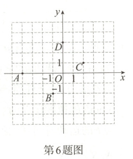 $6. $如图,在平面直角坐标系中,有$A, B, C, D$四点,若有一条直线$l$过点$(2, -2)$且与$y$轴垂直,则$l$也会经过$( )$