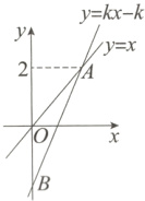 1. 如图,在平面直角坐标系中,正比例函数$y = x$的图象与一次函数$y = kx - k$的图象的交点为$A(m, 2)$。