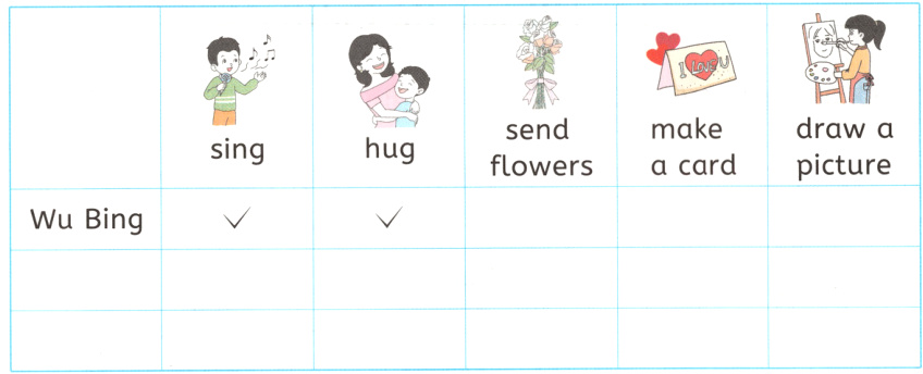 Step 1 你和你的朋友们是如何向家人表达爱意的?做个调查,并完成调查表。