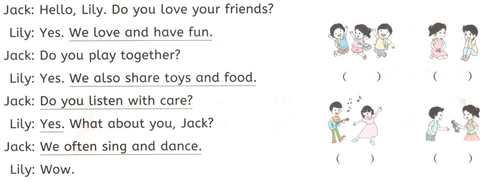 Step 2 Lily与Jack是怎样与朋友们相处的呢?根据对话内容,给下列图片排序。