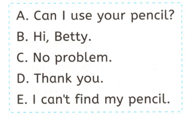 ( )2. A: Can I use your eraser? B: Sure. Here you are.