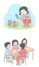 I am Lily. What can help me learn? I 1. ________ with my eyes. I 2. ________ with my nose. I 3. ________ with my tongue. I touch and 4. ________. I 5. ________ my classmates in class. I love my teachers and classmates.
