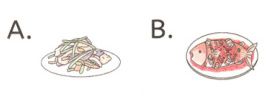 同学们在餐厅点餐。根据对话,选择正确的图片。
