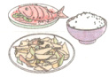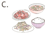 ( )3. It's dinner time. I'd like some fish and rice. I'd like some vegetables too.