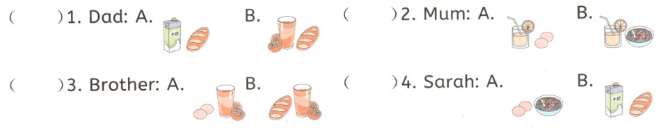Step 2 Sarah的妈妈经常根据家人的需要准备健康美味的早餐。根据表格,选出对应的选项。