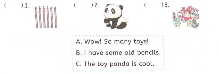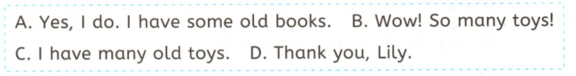 Lily和妈妈从房间中清理出了很多旧物品。根据图意,选择对应的句子。