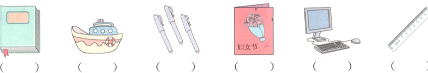 周末家庭清洁日,孩子们找到了很多旧物品。听录音,给下列图片排序。