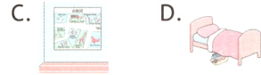 三周末,Lily的妈妈在教Lily如何整理房间。读句子,选择对应的图片。