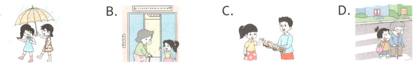二(学科育人)我们要怎样和邻居或朋友相处呢?选出与对话相对应的图片。