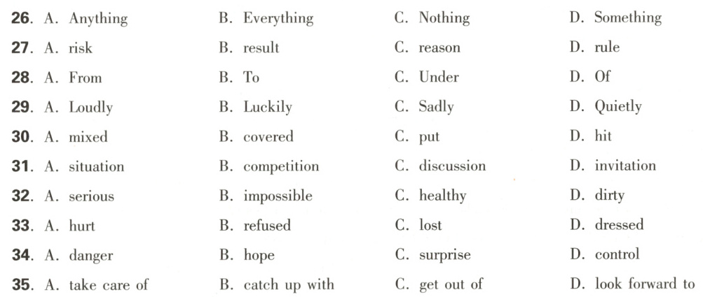 阅读下面短文,从每小题所给的 A、B、C、D 四个选项中选出可以填入空白处的最佳选项。