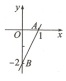 ∵直线AB过点$A(1,0)$,$B(0,-2)$,$\therefore\begin{cases}k + b = 0\\b = -2\end{cases}$, 解得$\begin{cases}k = 2\\b = -2\end{cases}$.