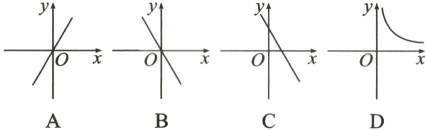 2.(金昌市中考)若直线y = kx(k是常数,k≠0)经过第一、三象限,则k的值可以为 ( )