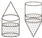 例 如图,一个下面是圆柱、上面是圆锥的容器。圆柱的高是14厘米,圆锥的高是12厘米。容器内水面的高是9厘米,当将这个容器倒过来时,从圆锥的顶点到水面的高是多少厘米?