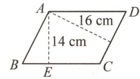 2. 如图,平行四边形ABCD的周长是75厘米,以BC为底的高是14厘米,以CD为底的高是16厘米。平行四边形ABCD的面积是多少平方厘米?