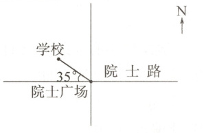 (1) 学校在院士广场的( )偏( )( $)°$方向 1000 米处。