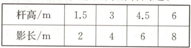 下面是同一时间、同一地点测量的杆高和影长的记录表。根据记录表画出杆高和影长的关系图并解答问题。