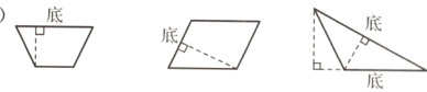 ① 画一个三角形、一个等腰梯形和一个底是6厘米、高是4厘米的平行四边形。