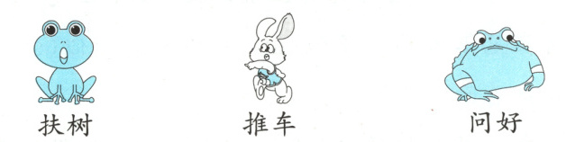 2. 早上好,朋友 青蛙先生 青蛙先生扶住树苗 小兔 小兔推车子 太太在准备早餐 明天早晨还要早起,说三遍“早上好,朋友”