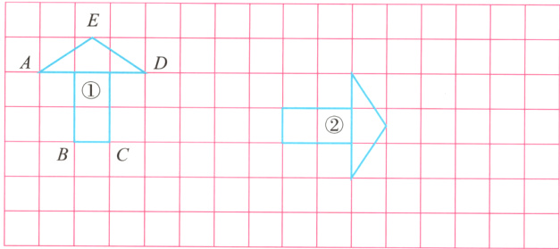 2.(答案不唯一)图形①先绕点C顺时针旋转90°,再向右平移5格得到图形②。