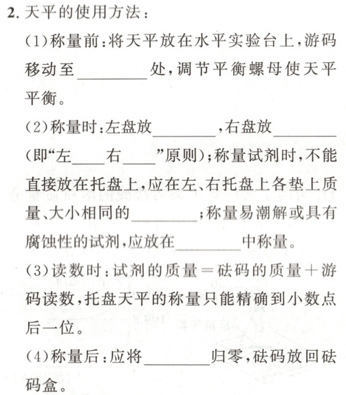 (2)试剂 砝码 物 码 纸片 玻璃器皿
