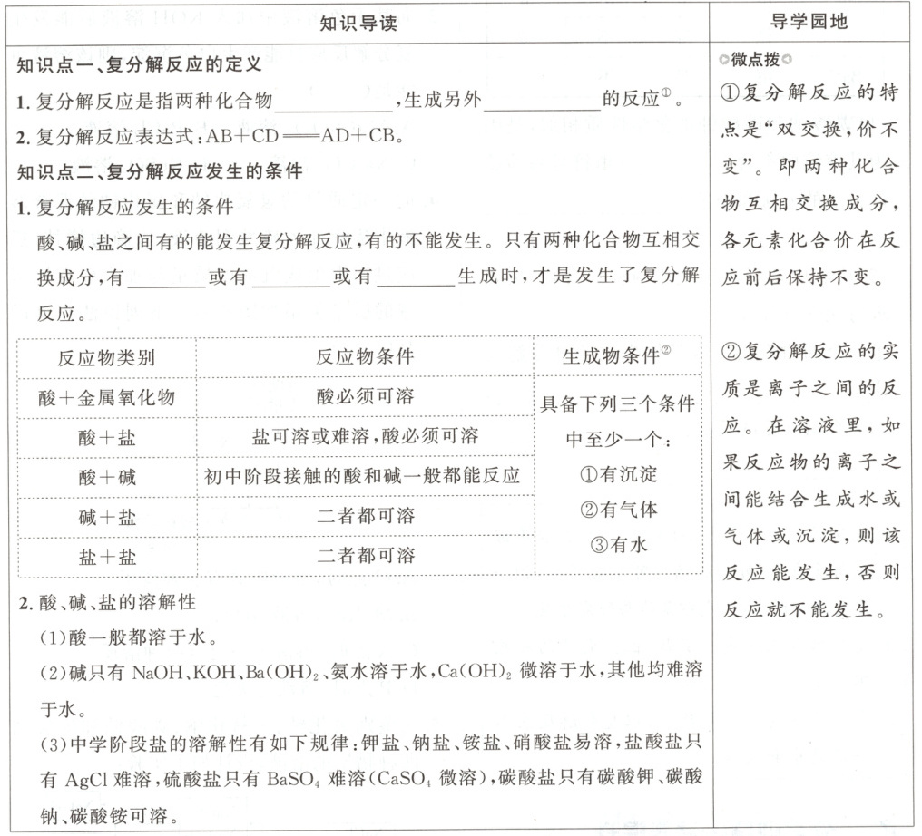 1. 下列化学反应属于复分解反应的是( )