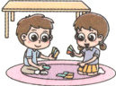 ( )2. Danny is playing cards ________ Tom.