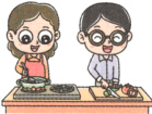 ( )5. The man and the woman are cooking.