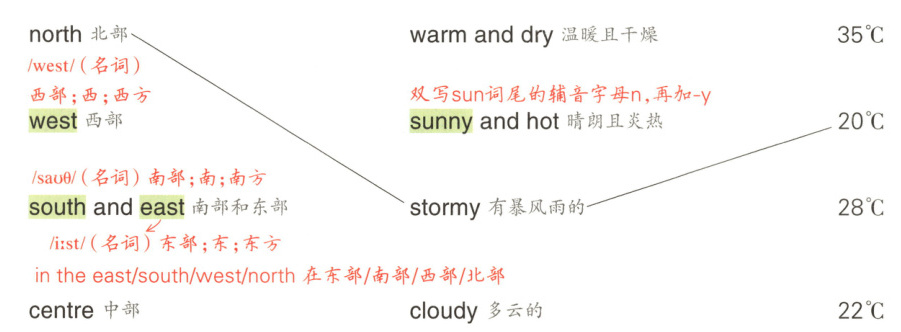 1b Listen to the weather report. Match the different parts of Australia with the weather conditions. 听天气预报。将澳大利亚的不同地区与其天气情况匹配。