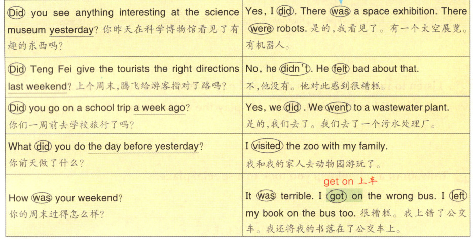 3a Read the sentences. Circle the verbs in the simple past tense. Then underline the time expressions for the past. 读句子。圈出用在一般过去时中的动词。然后在过去时间的表达下画线。