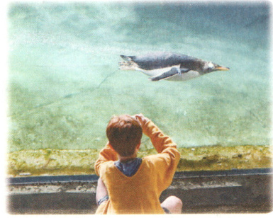 Peter: Oh, there they are! They can't fly like other birds, but they can swim fast. I like how they walk. It's