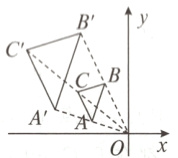 $\therefore$以点$O$为位似中心,相似比为$2.5$,将$\triangle ABC$放大,则点$E$和点$F$的坐标是$(-2.5,10),(7.5,5)$或$(2.5,-10),(-7.5,-5)$。