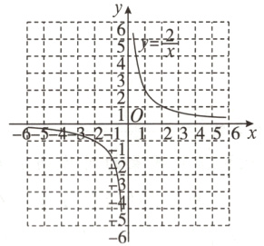 描点连线:在已画出函数$y = \frac{2}{x}$的图象的坐标系中画出函数$y = \frac{2}{x + 1}$的图象。