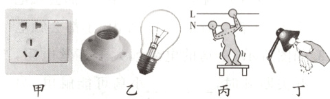 D. 丁图:不能够用湿手摸或湿布擦与电源相连接的灯具