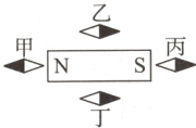 4. 如图所示,一条形磁铁的周围放着能自由转动的小磁针甲、乙、丙、丁,这四个小磁针静止时N极的指向画错的是(磁针的黑端表示N极)( )