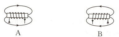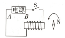 7. 如图所示,当S闭合时,小磁针逆时针偏转,则通电螺线管左端为______极,电源的B端为______极。