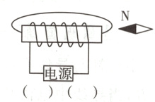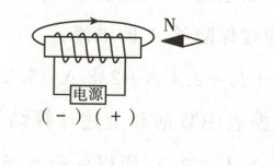 10. 图中电路连接正确,通电后小磁针指向如图所示(涂黑端表示N极),请在图中标出电源的“+”“-”极,并画出螺线管的绕法。