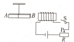 8. 如图所示,用细线悬挂的磁体AB,磁极未知。当闭合电路开关S后,磁体的B端与通电螺线管左端相互排斥,则B端是磁体的______极。断开开关S,磁体静止时,B端会指向地理的______(选填“北方”或“南方”)。