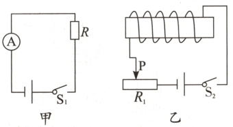 (1)当图乙S2断开、图甲S1闭合时,电流表的示数为______mA。闭合S1和S2,图乙中滑动变阻器的滑片P向右移动,图甲中电流表的示数逐渐减小,说明磁感电阻R处的磁感应强度B逐渐______。