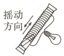 12. 小明同学自制了如图所示的装置,在有机玻璃管上绕着带有绝缘层的导线,线圈两端连着小功率灯泡,管内放入条形磁体,用橡皮塞堵住管口两端,当沿图中箭头方向来回摇动时,小灯泡就会发光。它应用的是______原理,将______能转化为电能,线圈中电流的方向是______(选填“变化”或“不变”)的。
