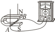 4.(九全 P138 图 20.5 - 1 变式)探究磁生电的条件:实验装置如图所示,在磁场中悬挂一根导体 AB,把它的两端跟电流表连接起来,组成闭合回路。