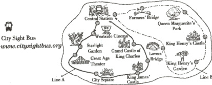 Welcome to our city! Do you want to have a great time,but you are tired of route(路线) planning? If so,we have a city sight bus for you! The following map includes two lines which cover all the sights in our city. Come and have fun!