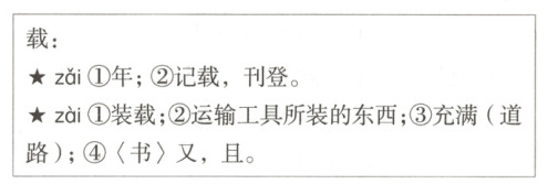 (2) 查工具书是学习字词的重要方法,查阅《现代汉语词典》并结合语境,文中“风雪载途”的“载”的读音为____,释义为____。