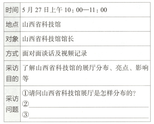 (3)丰富多彩的科学技术让学生们受益无穷。校报记者小郑采访了山西省科技馆馆长。请你根据采访目的将采访问题补充完整。