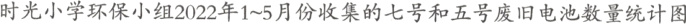 5. 时光小学环保小组利用周末时间收集废旧电池,并做好环境保护宣传工作。下面是时光小学环保小组2022年1~5月份收集的七号和五号废旧电池数量统计图。