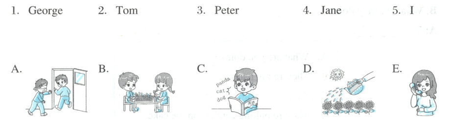 四、听短文,将人物与他们正在做的事情连线。(10分)