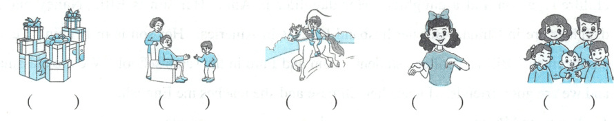 二、听句子,用数字1—5给下列图片排序。(5分)
