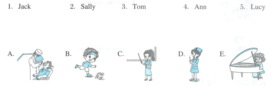 四、听短文,将人物与其想要从事的职业连线。(10分)
