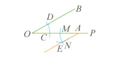 7 - 1x 如图,点C,A在OP上,小明利用尺规作出了如图所示的图形,根据作图可知OB//AE的根据是( )