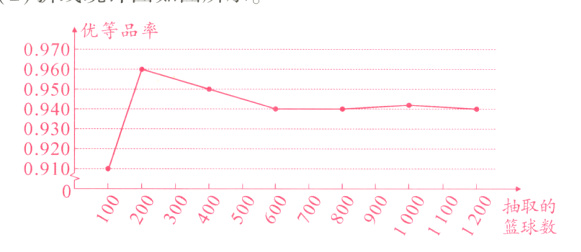 (3)从这批篮球中,任意抽取的一个篮球是优等品的概率的估计值是多少?(精确到0.01)
