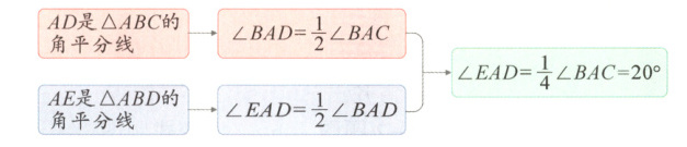 例3 如图,AD是△ABC的角平分线,AE是△ABD的角平分线,∠BAC = 80°,则∠EAD的度数是( )
